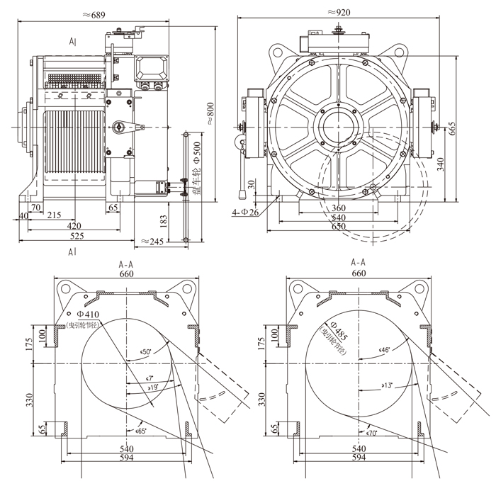 1000kg Gearless Traction Machine With Permanent Magnet Synchronous