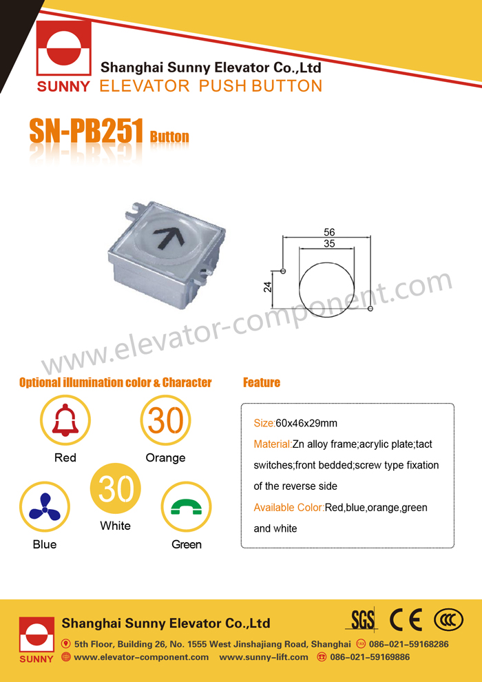Zn alloy frame and acrylic plate elevator push button(SN-PB251)