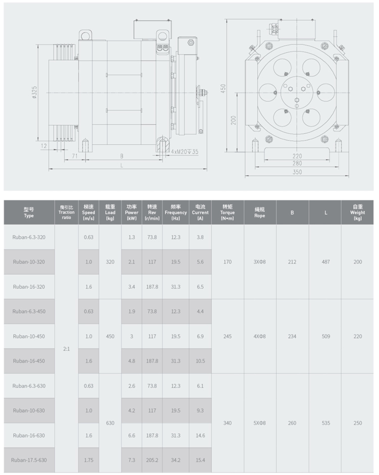 This series of toothless traction machine adopts slim design, compact structure, easy to install small machine room, machine room.The traction sheave is cantilevered, which makes it easy for the user to install and dismount the traction sheave.