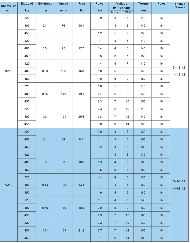 Sheave Diam | 200mm/240mm |